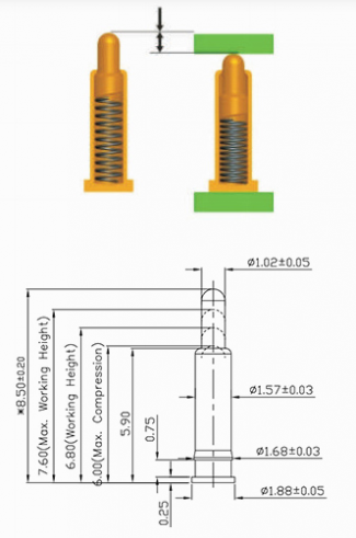 ارتفاع کار پایه Pogo Pin (کانکتور فنری):