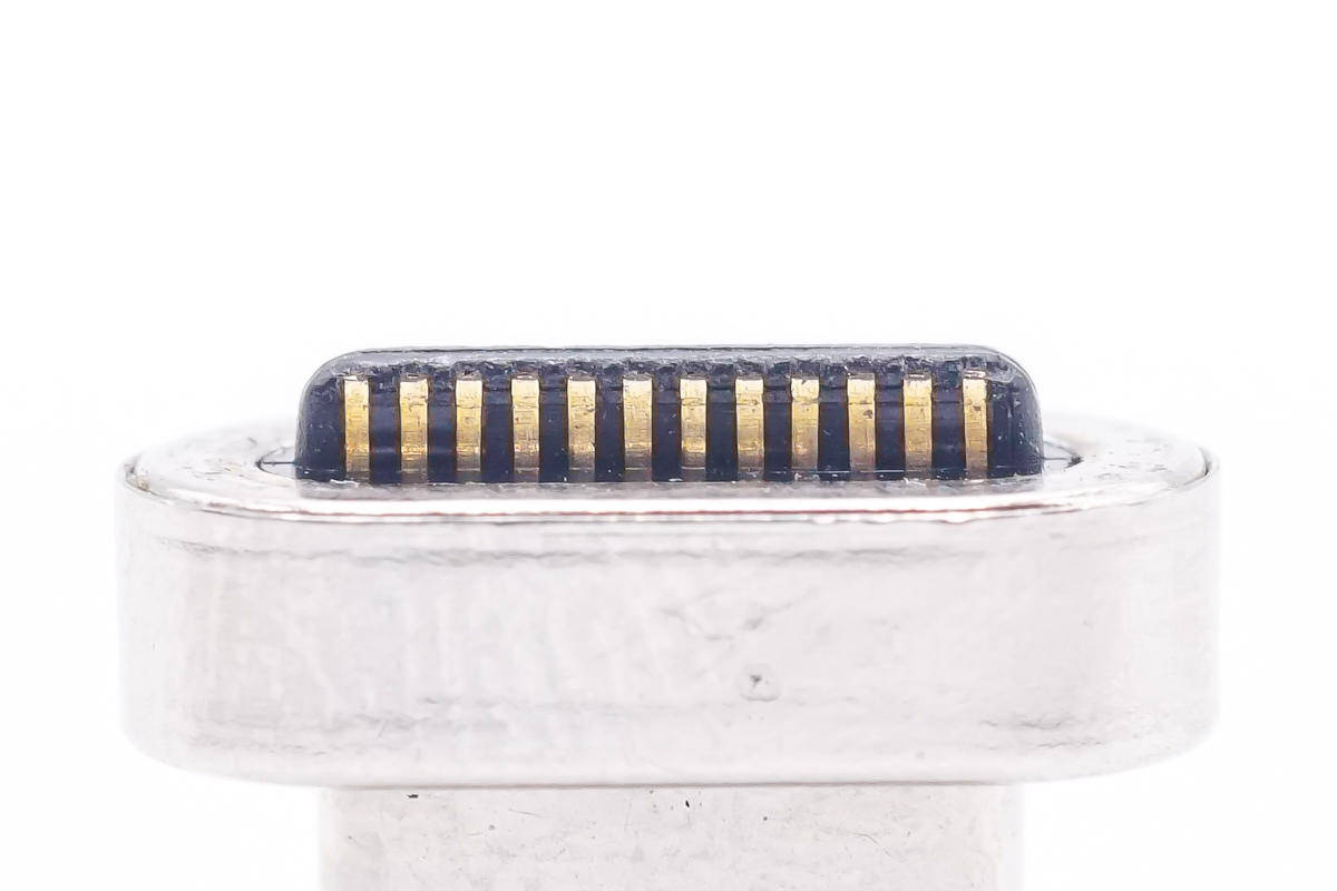 جزئیات داخلی انتهای نر USB-C برای پین های کامل طراحی شده است.