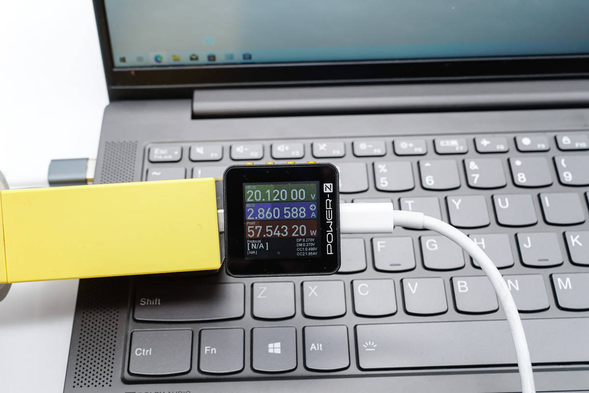 اول از همه، بیایید شارژ سریع را بررسی کنیم. از یک شارژر 100 واتی با آداپتور مغناطیسی سر مستقیم برای شارژ لپ تاپ با توان 20.12 ولت 2 استفاده کنید.{5}}یک 57.54 وات.