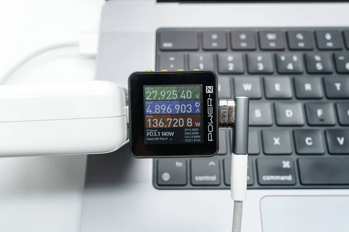 حتی ... از شارژ سریع 140 واتی نیز پشتیبانی می کند و آداپتور به شارژر 140 واتی نیترید گالیوم اپل و کابل شارژ سریع MagSafe 3 متصل است. در این زمان ولتاژ شارژ 28 ولت و توان 135.72 وات است.