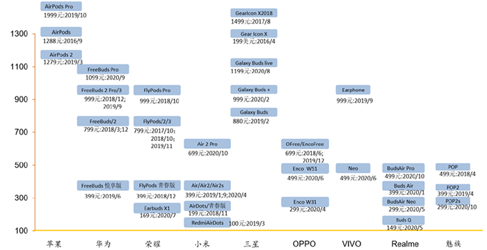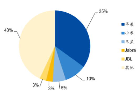 از منظر توزیع برند، بازار هدست TWS اولین بار توسط اپل منفجر شد. پس از چندین سال توسعه، محصول AirPods آن، سهم بازار بسیار بالایی در بازار میانرده تا رده بالا دارد. بر اساس داده های تحلیلی Counterpoint، تا سه ماهه دوم سال 2020، سه شرکت برتر در بازار TWS اپل (35 درصد)، شیائومی (10 درصد) و سامسونگ (6 درصد) هستند. بازار.